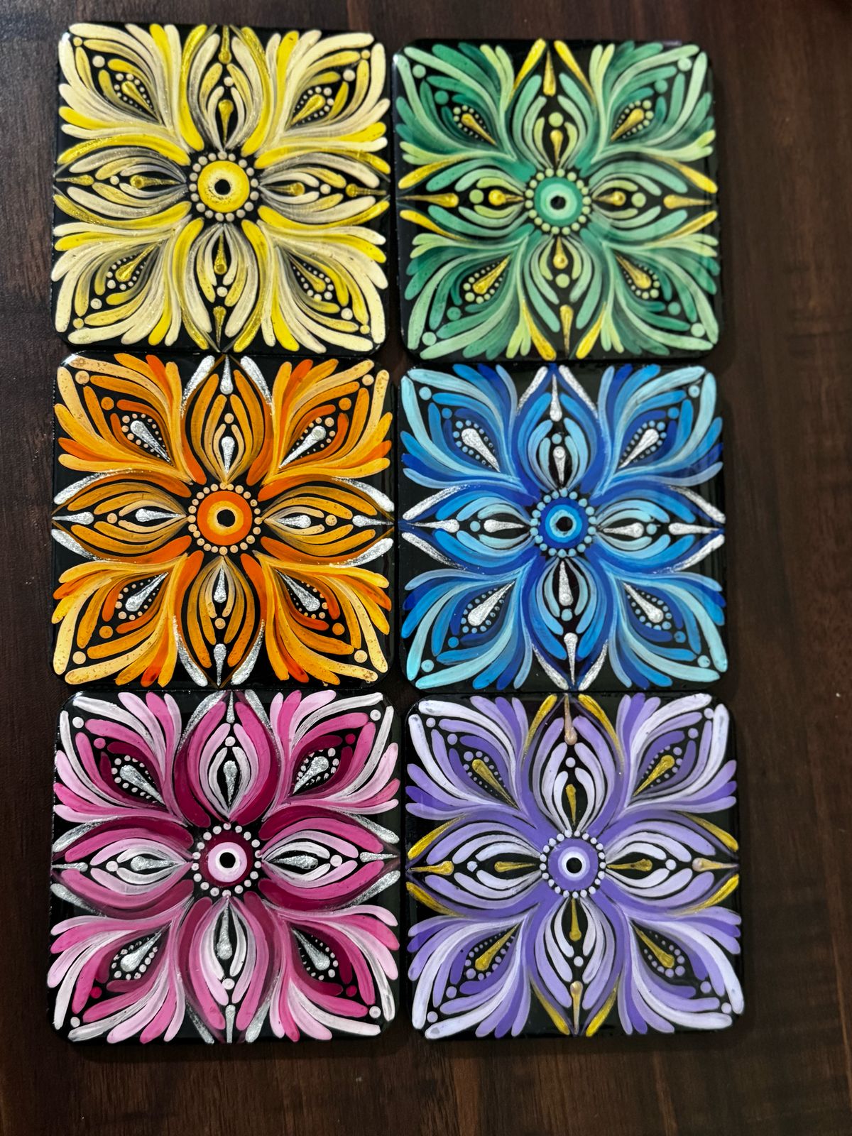 Elevate your home décor with our beautifully handcrafted hand-painted coaster set, designed to infuse your space with vibrant colors and artistic charm. Each coaster is made from high-quality MDF (Medium-Density Fiberboard) that offers durability and stability while providing an eco-friendly alternative to traditional materials.